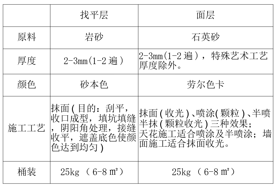 4、抹面層:使用不銹鋼抹子抹涂。抹涂2-3遍,每遍抹涂需待 前一遍風(fēng)干(一般12-24小時左右)后才可進(jìn)行下一次抹涂,每遍控 制厚度1毫米左右,總厚度應(yīng)控制在2mm左右。表面刮涂一次收光完 成,不可重復(fù)涂抹以免增加厚度,造成平整度差。